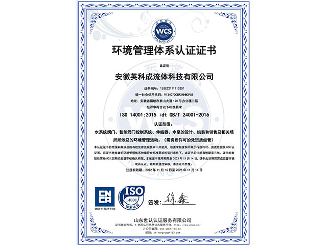 • 環(huán)境管理體系認(rèn)證證書(shū)